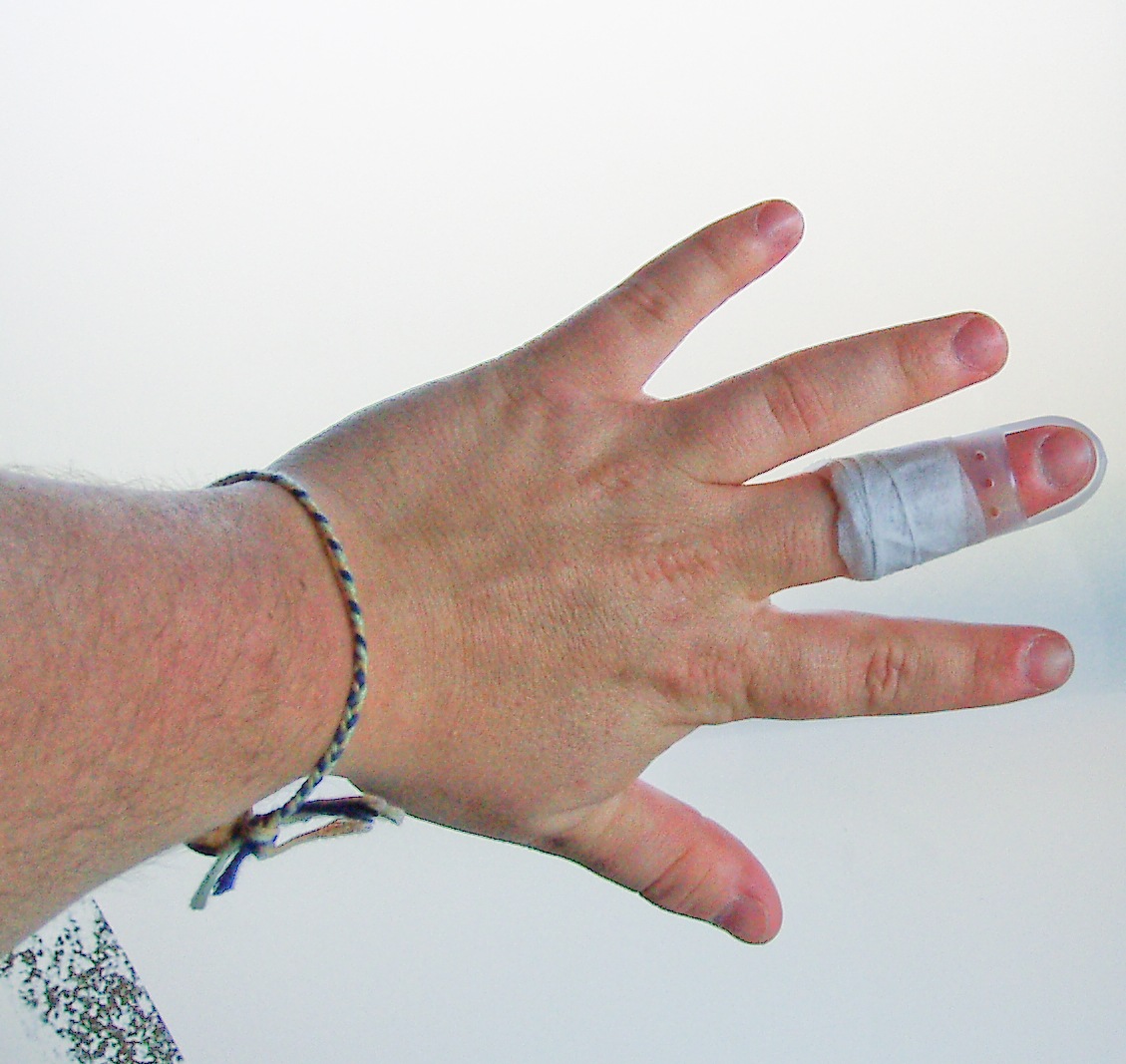 Yes yes I know, I’m a dork. How do you break your middle finger? Well you tag a guy out at home plate while playing softball. As it stands now I have to keep the splint on for at least six weeks, which means three weeks and then I have to wear it only when I play ball for a while.